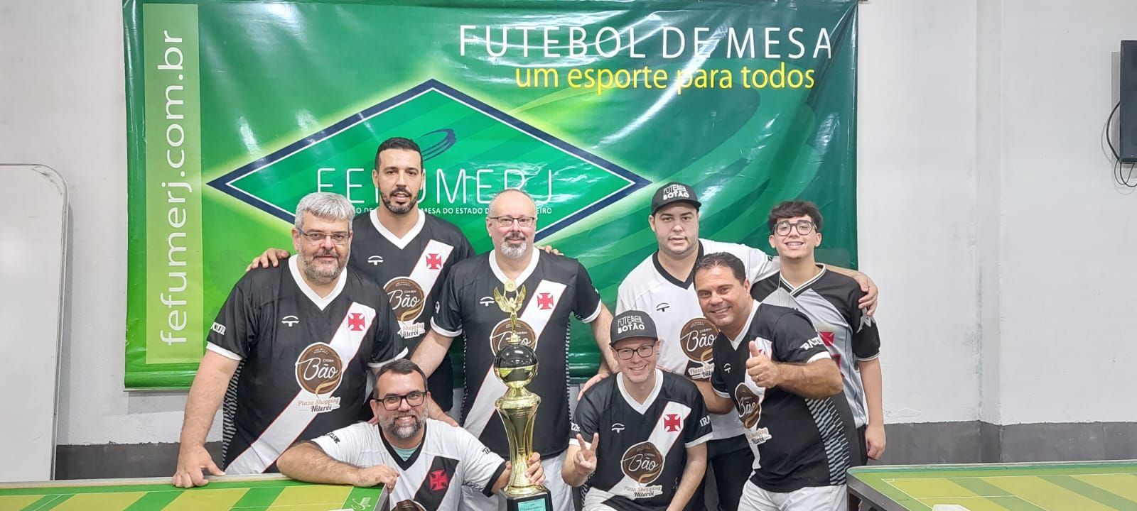Dezoito equipes guerreiras! Setenta e dois botonistas imortais! Um só objetivo! Em um duelo de gigantes, digno da tradição da modalidade dadinho no Rio de Janeiro, a luta pelo título da Taça Fefumerj foi emocionante, cruel, acirrada. Tal qual um highlander das mesas — afinal, só pode haver um campeão —, o Vasco A não perdeu sua cabeça e, aliando força e talento, bateu o América A na finalíssima da Série Ouro, por 2 a 1, para levar, sem derramamento de sangue, mais um troféu para sua vasta coleção. Com direito ao tradicional grito de casaca e com o hino cruzmaltino bradado nos quatro cantos da bela sede do Botafogo Futmesa, domingo (11/6), na Lapa.